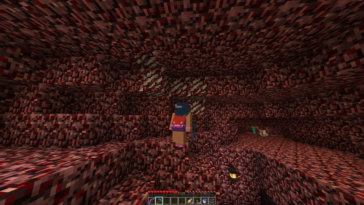 A fence made out of nether brick, can be found in nether fortresses. An easy way to get some gold is by mining the nether gold ore that you expose while looking for ancient. Always mark your path when you are running around in the nether because it's easy to get lost. Currently in age 3, vanilla nether quartz ore is unmineable with my current equipment.