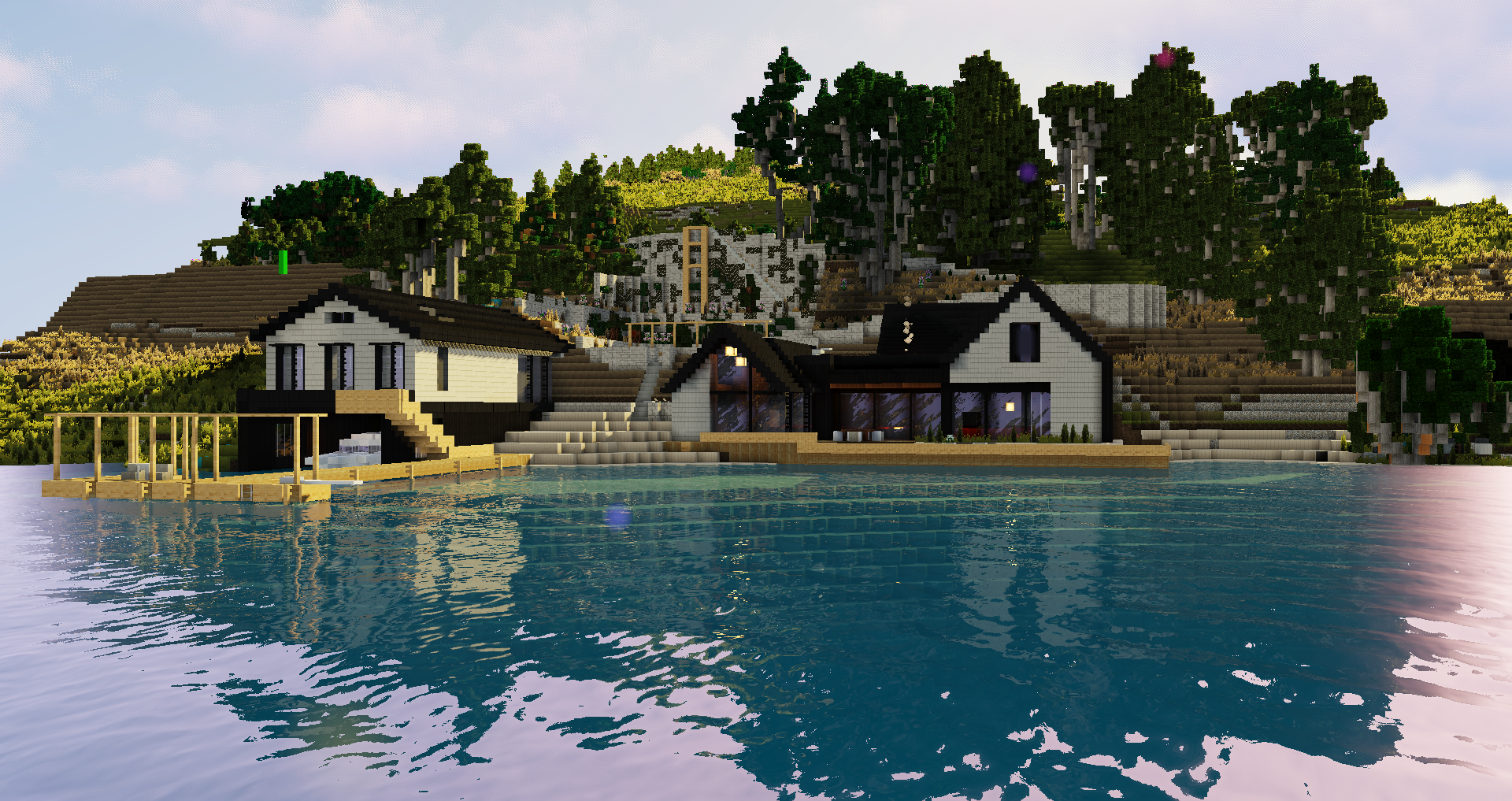 Lakefront House Minecraft. A modern house i built with a lake in the back. Showcasing a build in minecraft.